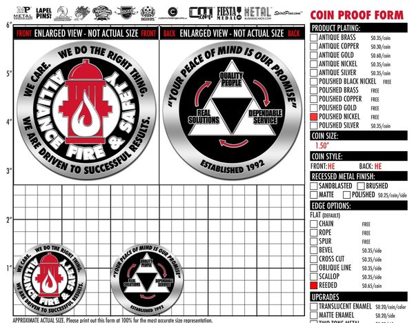 Rich Hart from the Alliance Fire and Safety Venice FL. wanted to give a coin to each member of the company to carry with them at all times to remind them of the core values, our promise we make to the customer, and the three uniques we offer to our customers.