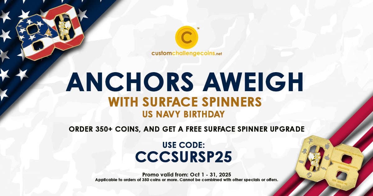 This offer is only available until March 31, 2025. Order now and honor the Navy Reserve with a custom coin! Use the code CCCNAVYBDAY25 on our quote form to apply.